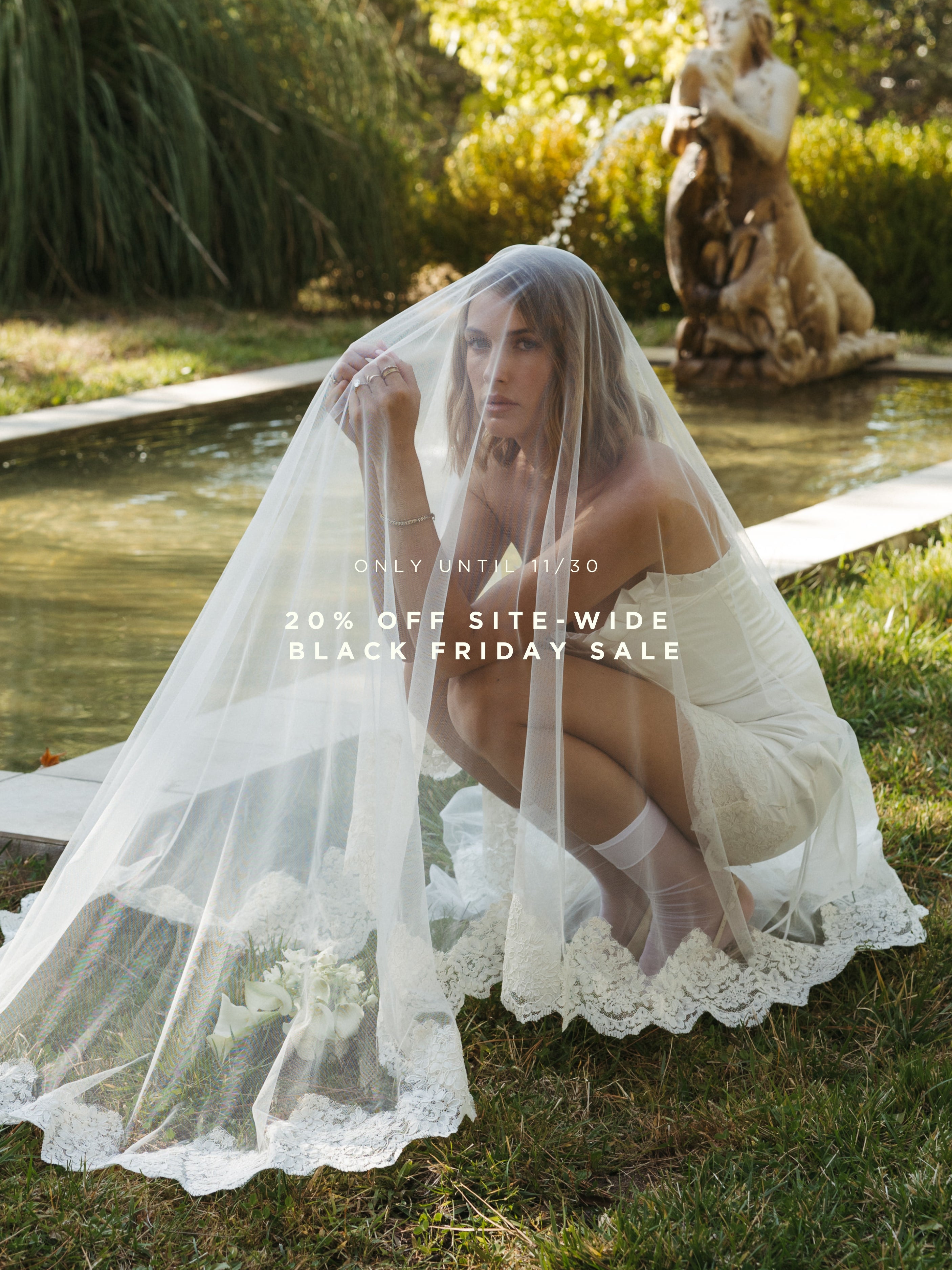 We've created veils to go seamlessly with each of our Daughters Of Simone bridal gowns. It’s not every day (or ever again) that you get to adorn a veil so we say - go for it. Veils come in cathedral length (108” long) or fingertip length (42” long).