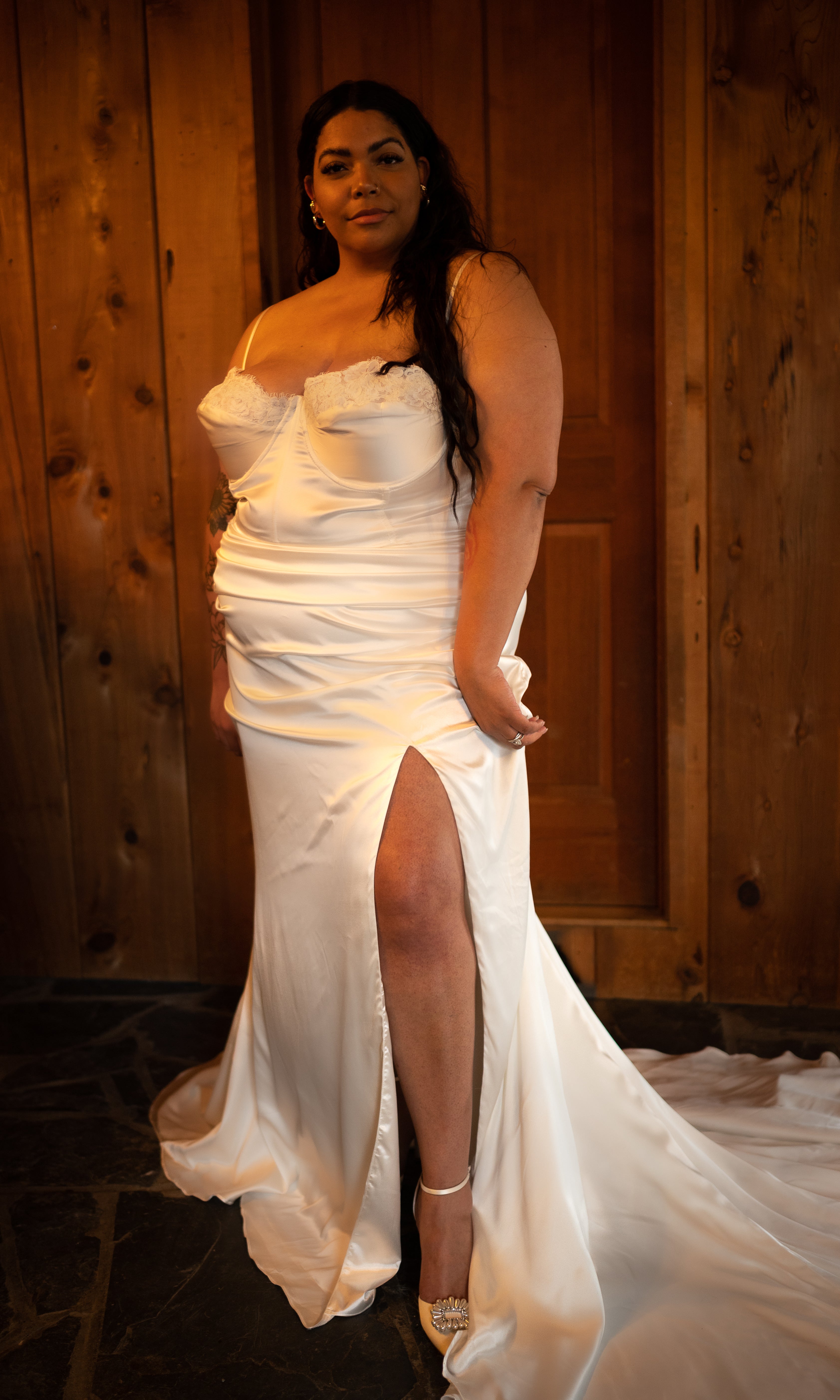 For that perfect fit, we recommend looking towards your local bridal seamstress to accommodate any minor alterations necessary (a basic google search should turn up some possible options for you). We do not provide this service in house.