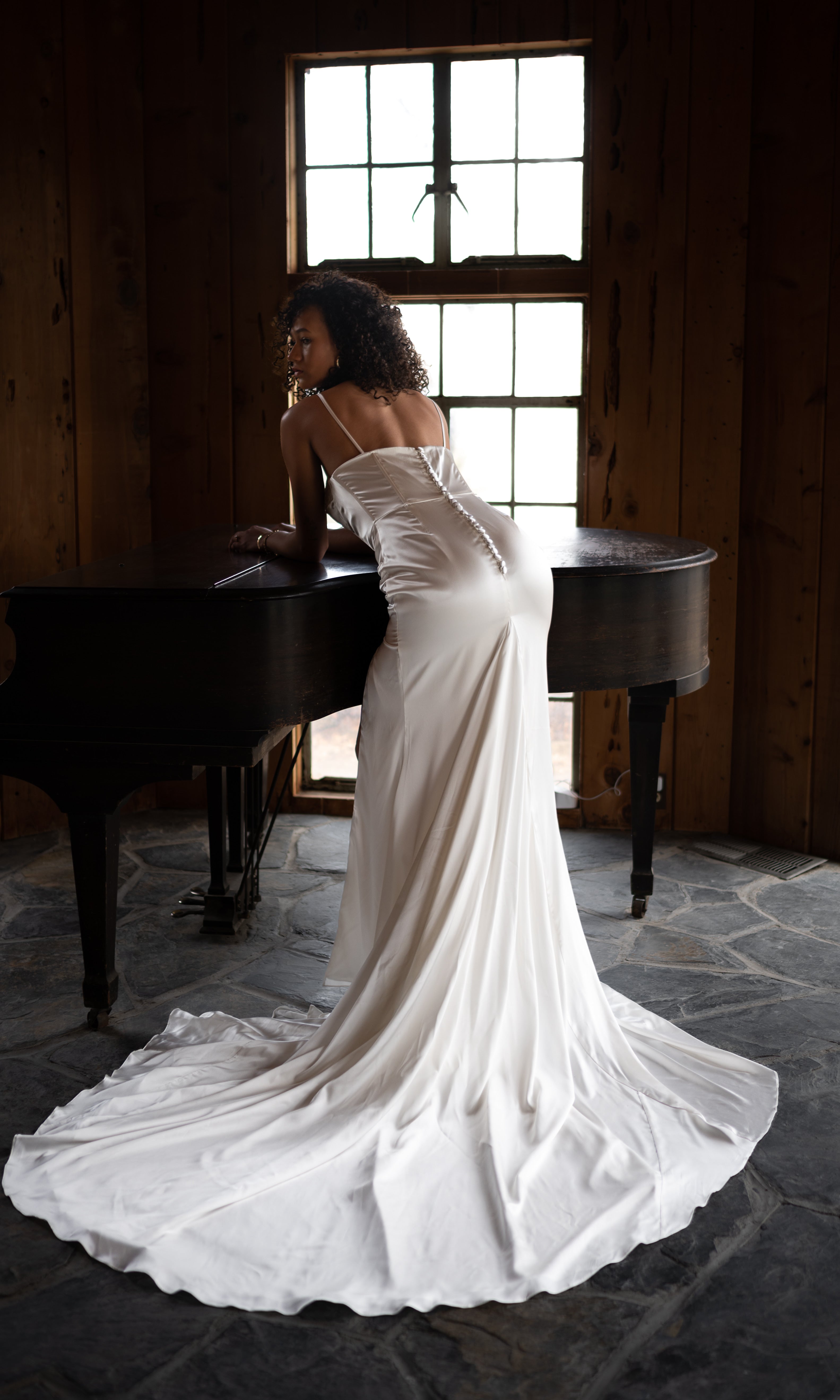 Find out where you can try on our gowns on our retailers and trunk shows pages. If there is not a retailer near you, we’d love to send you the gown to try on at home.