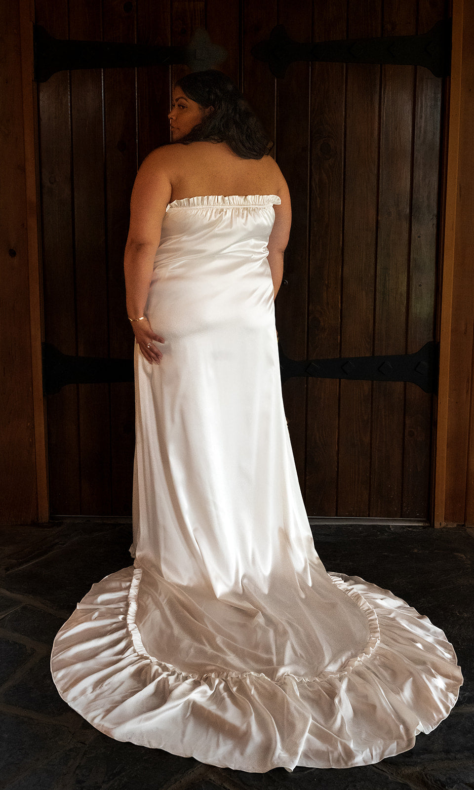 Find out where you can try on our gowns on our retailers and trunk shows pages. If there is not a retailer near you, we’d love to send you the gown to try on at home.