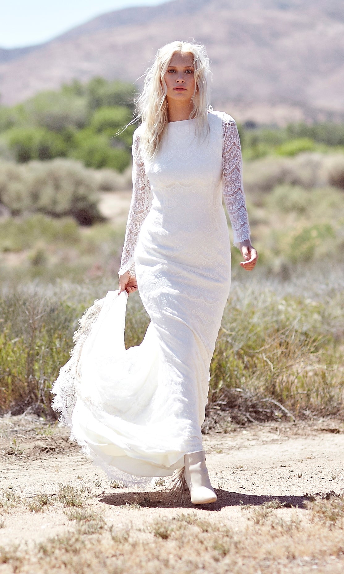 Find out where you can try on our gowns on our retailers and trunk shows pages. If there is not a retailer near you, we’d love to send you the gown to try on at home.