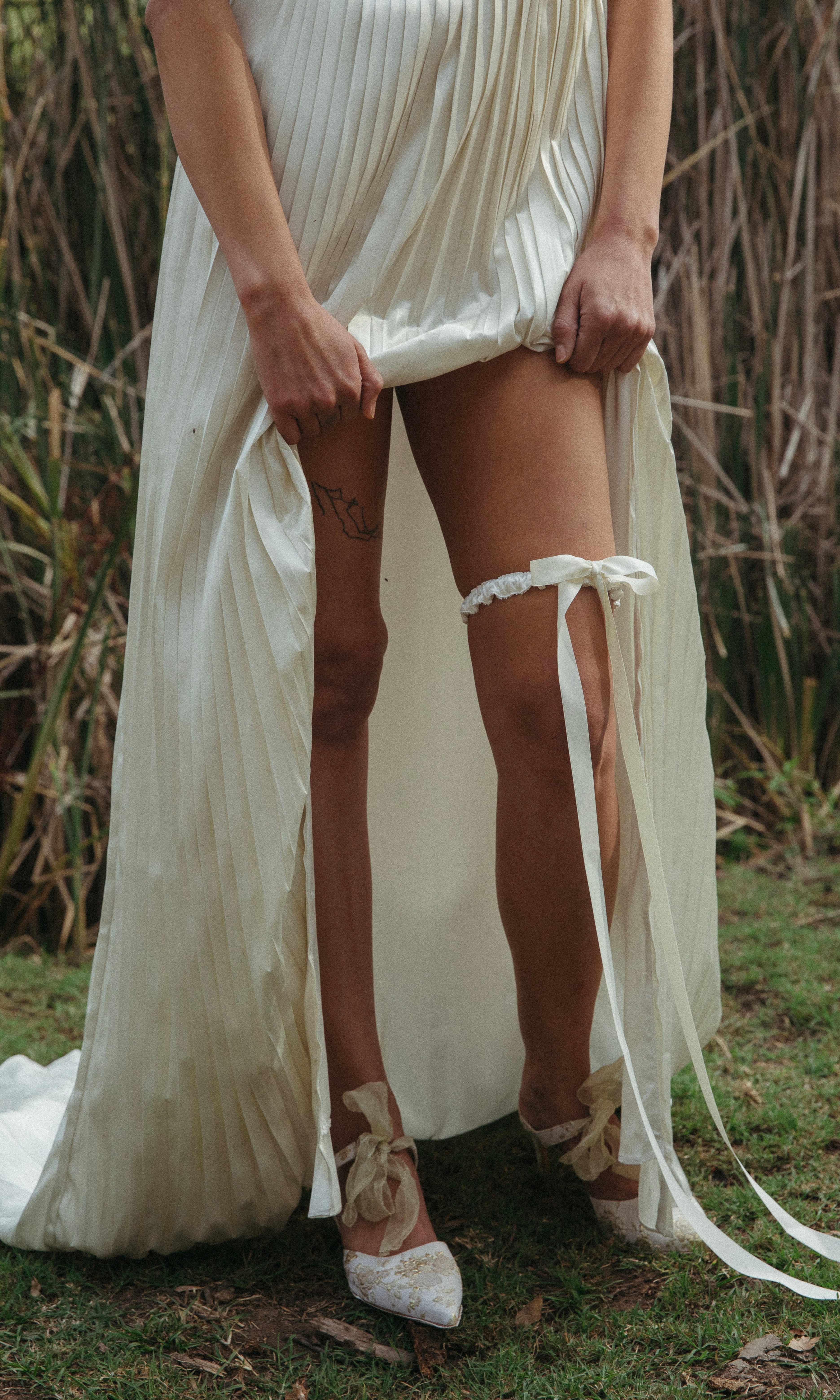 We recommend that all of our brides have their gowns dry cleaned after the big day. After dry cleaning has been completed, do not have your gown but rather make sure it's preserved in a box, to resist fabric stretching over time.