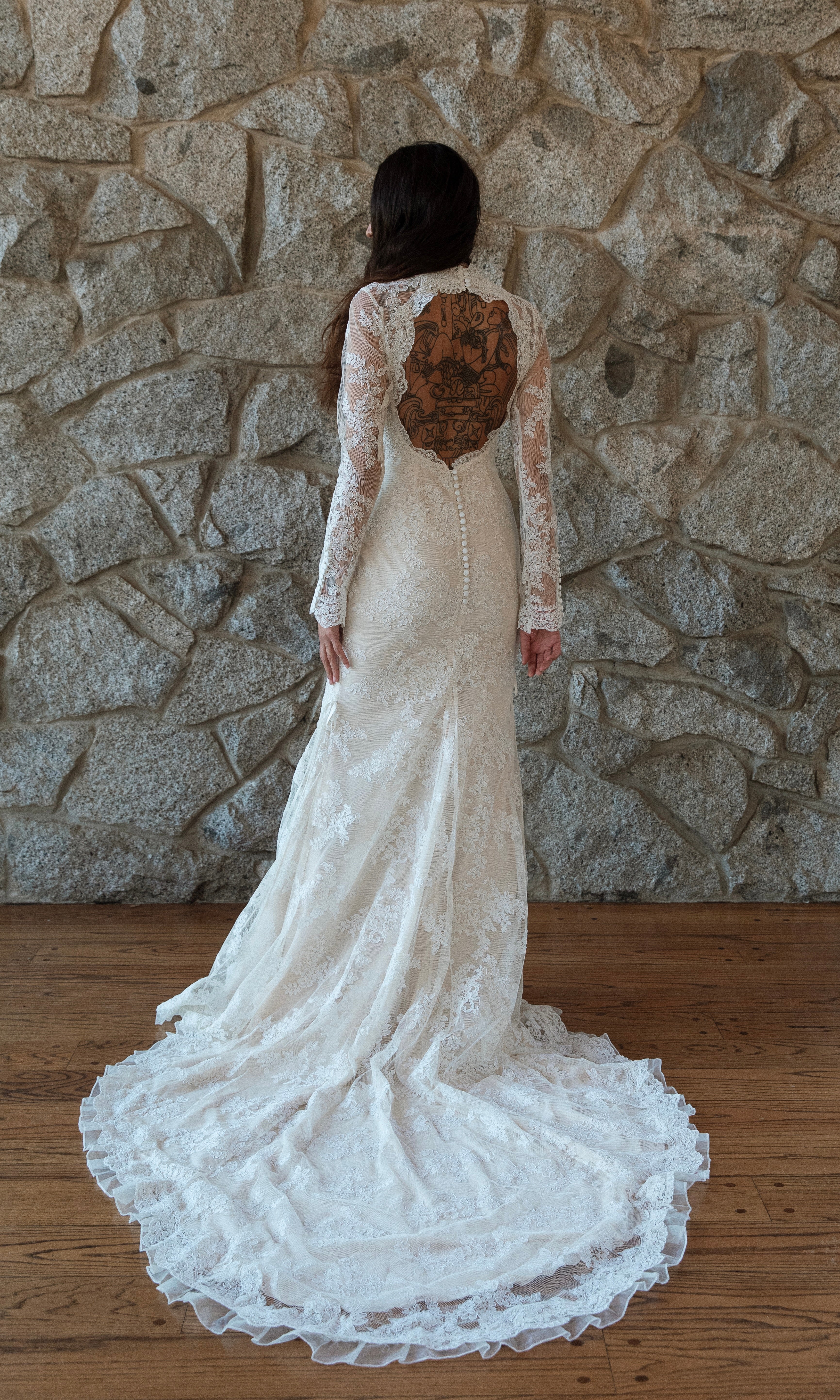 Find out where you can try on our gowns on our retailers and trunk shows pages. If there is not a retailer near you, we’d love to send you the gown to try on at home.