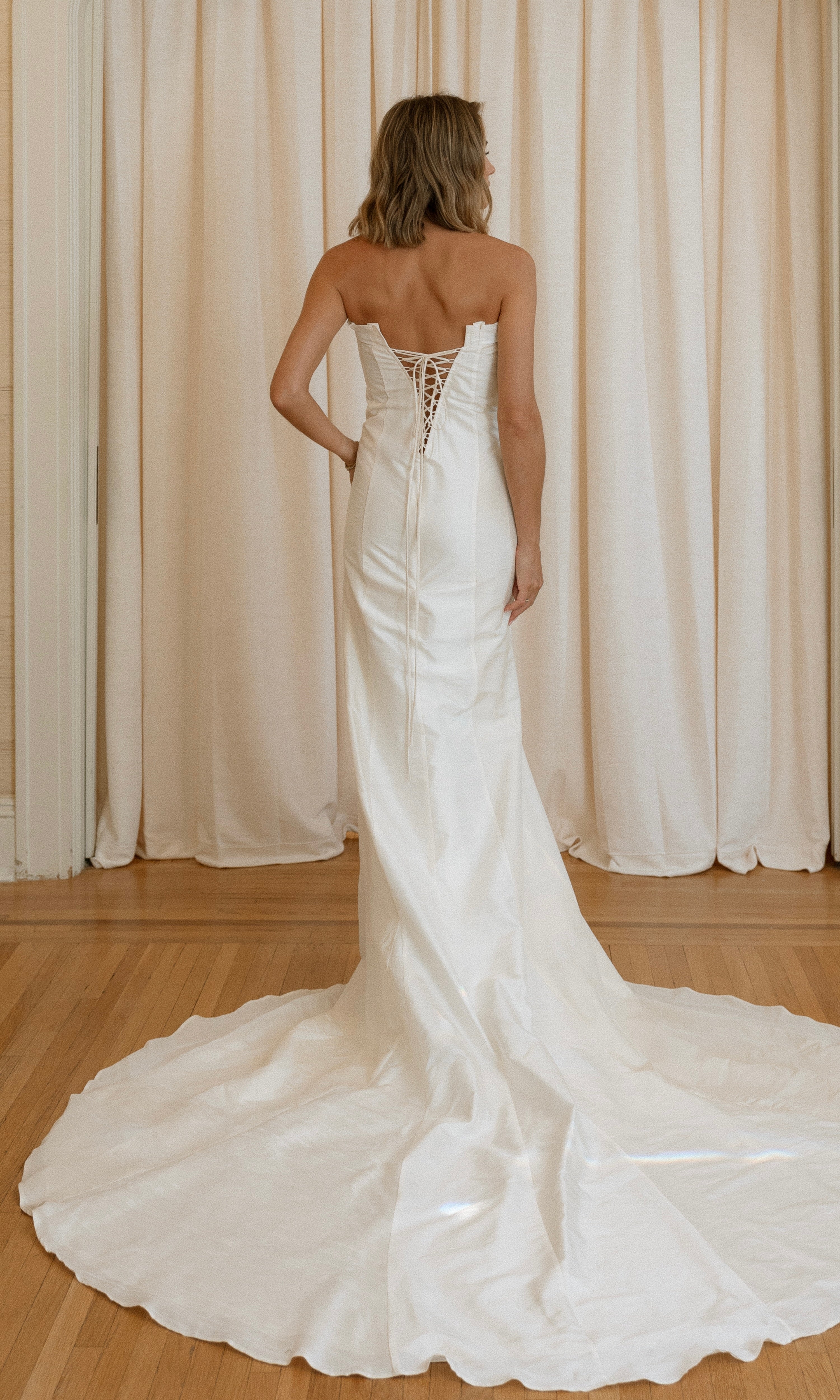 Find out where you can try on our gowns on our retailers and trunk shows pages. If there is not a retailer near you, we’d love to send you the gown to try on at home.