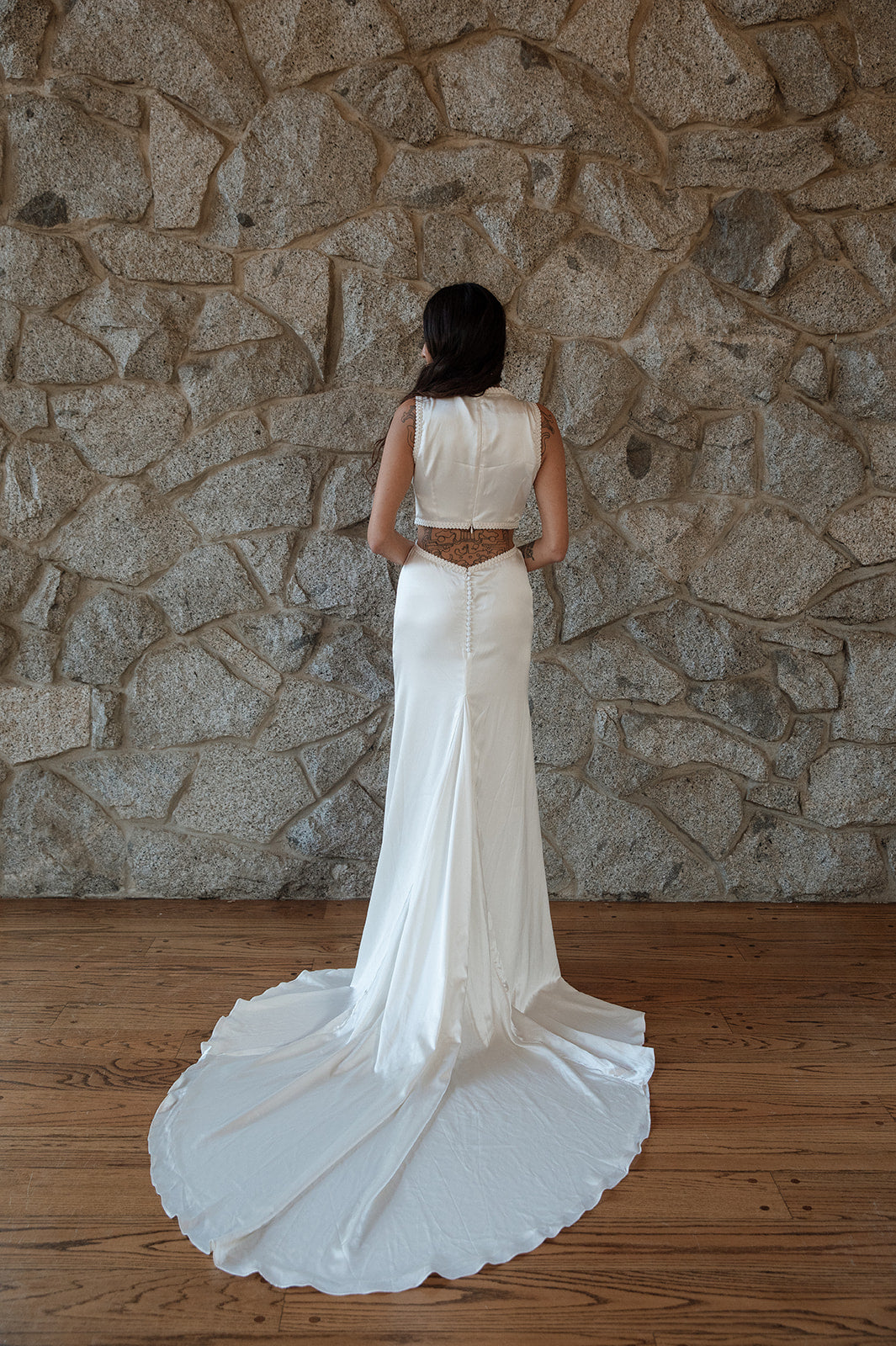 For that perfect fit, we recommend looking towards your local bridal seamstress to accommodate any minor alterations necessary (a basic google search should turn up some possible options for you). We do not provide this service in house.